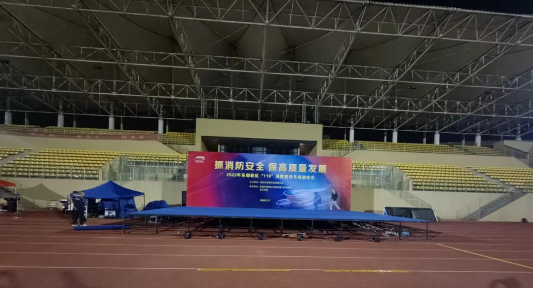 2022年東部新(xīn)區(qū)“119”消防宣傳月啓動儀式現場搭建工(gōng)作(zuò)按時保質(zhì)完成,億和文(wén)化感謝(xiè)參與籌備的工(gōng)作(zuò)人員的辛勤付出。