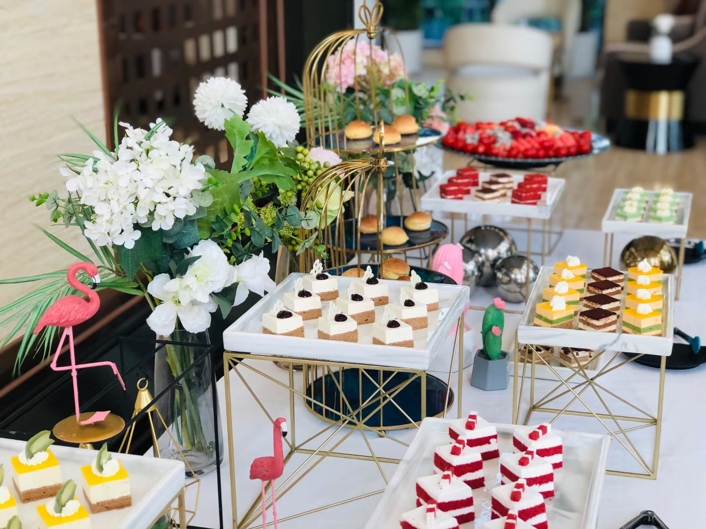 營銷中(zhōng)心内場設置馬卡龍系列主題冷餐,給來賓營造尊貴的禮遇。