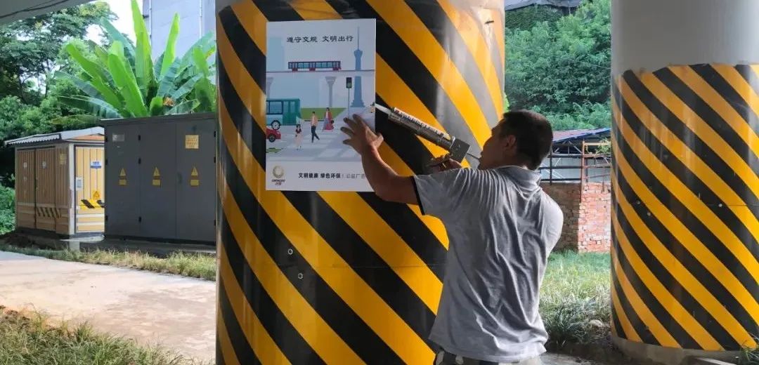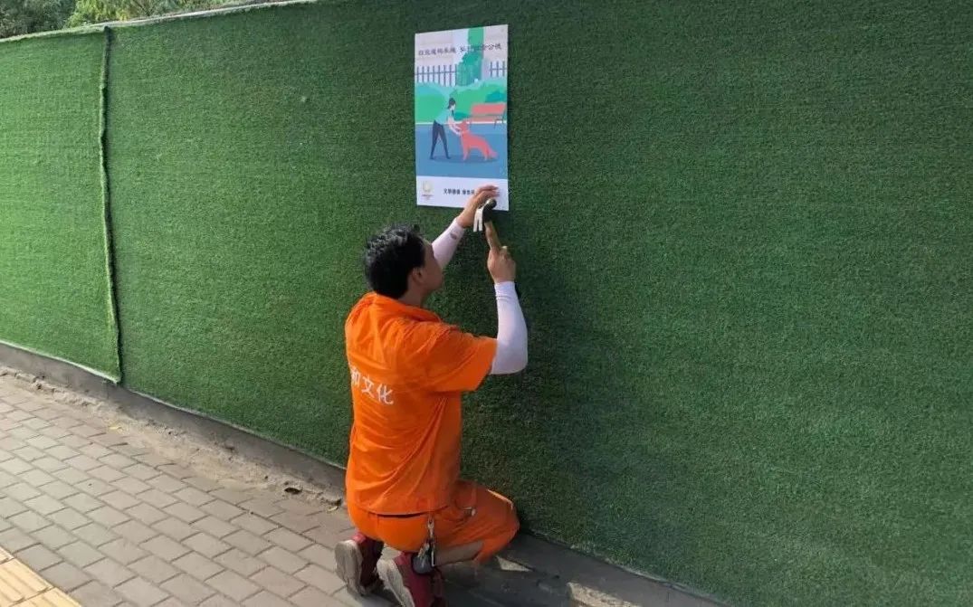 工(gōng)作(zuò)人員安(ān)裝(zhuāng)公(gōng)益廣告