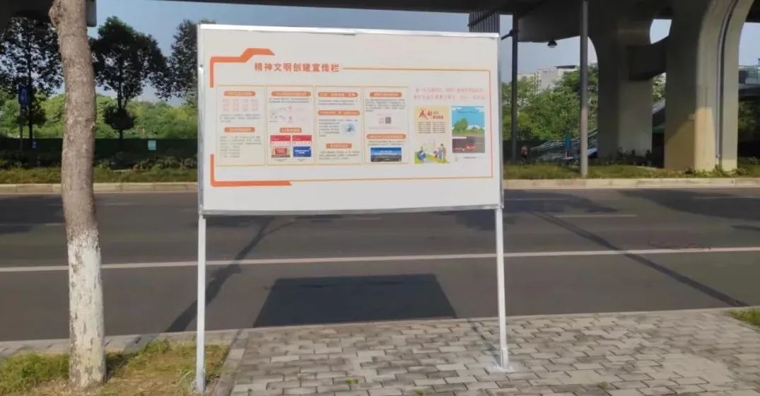 工(gōng)作(zuò)人員安(ān)裝(zhuāng)精(jīng)神文(wén)明建設宣傳欄