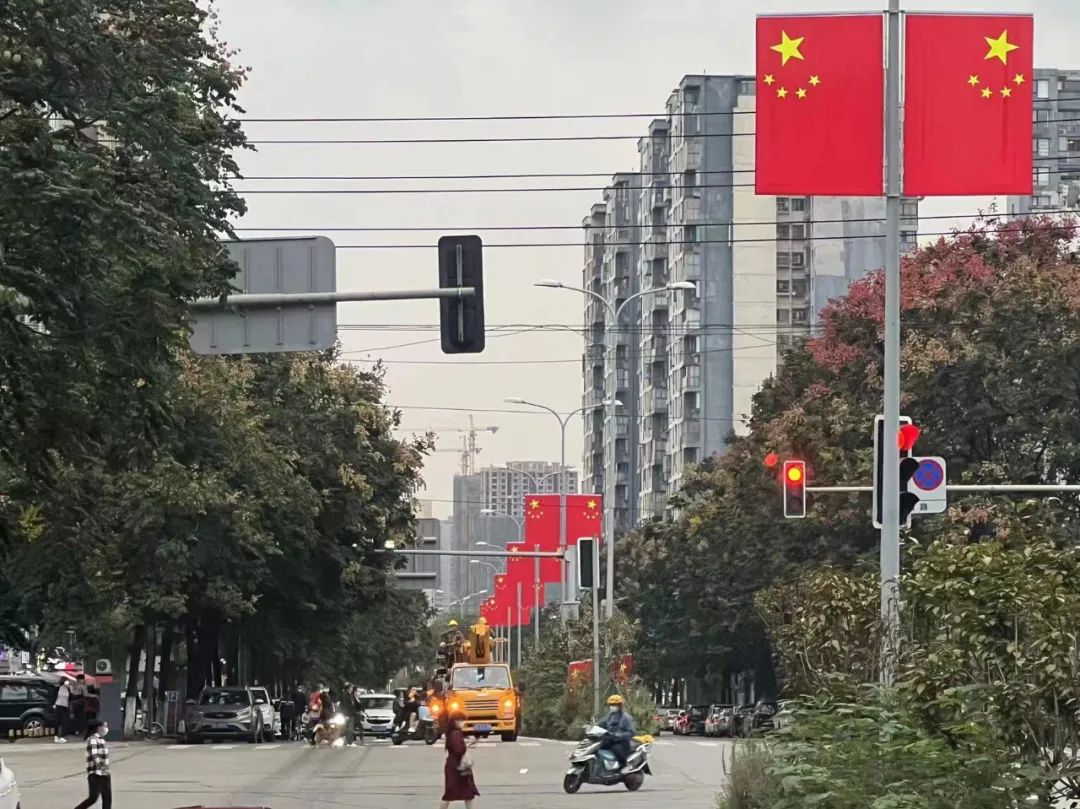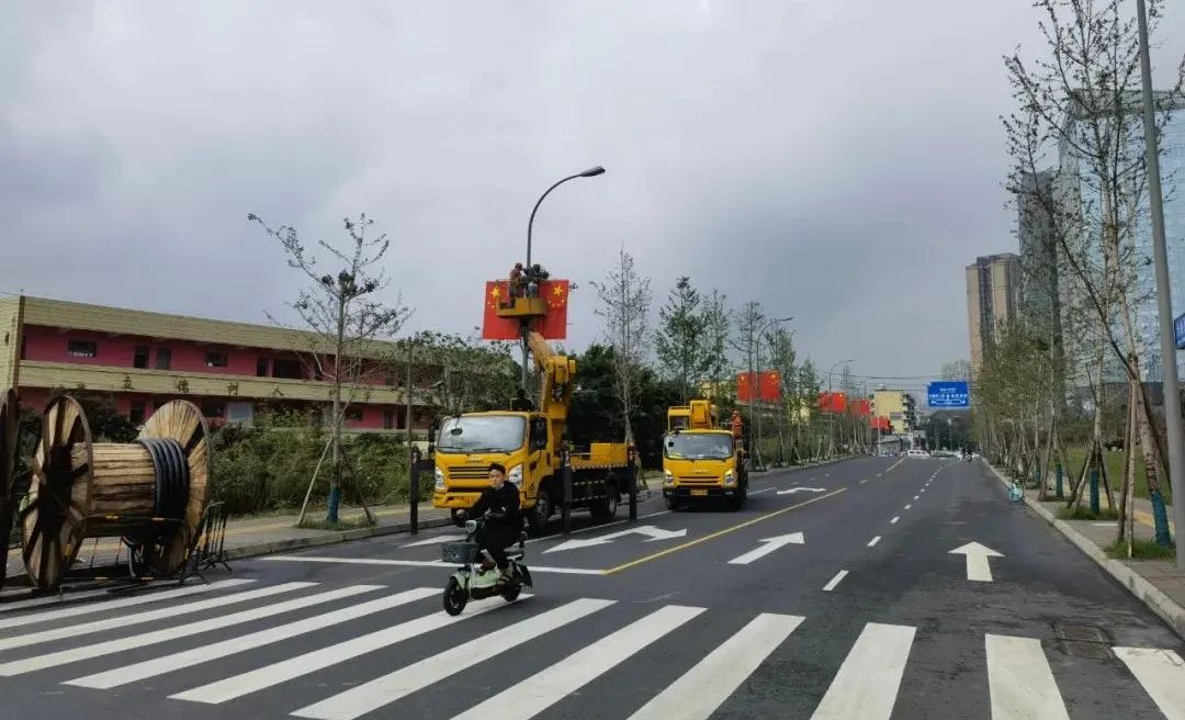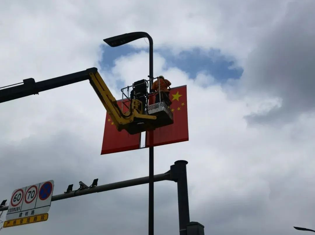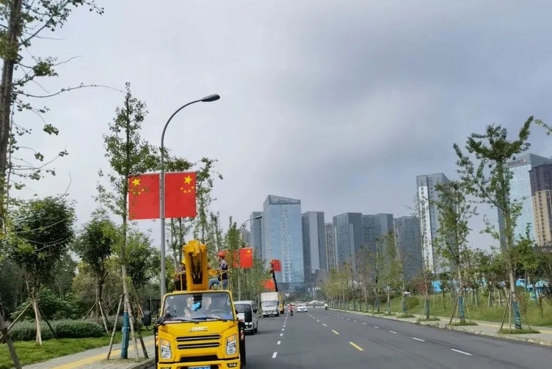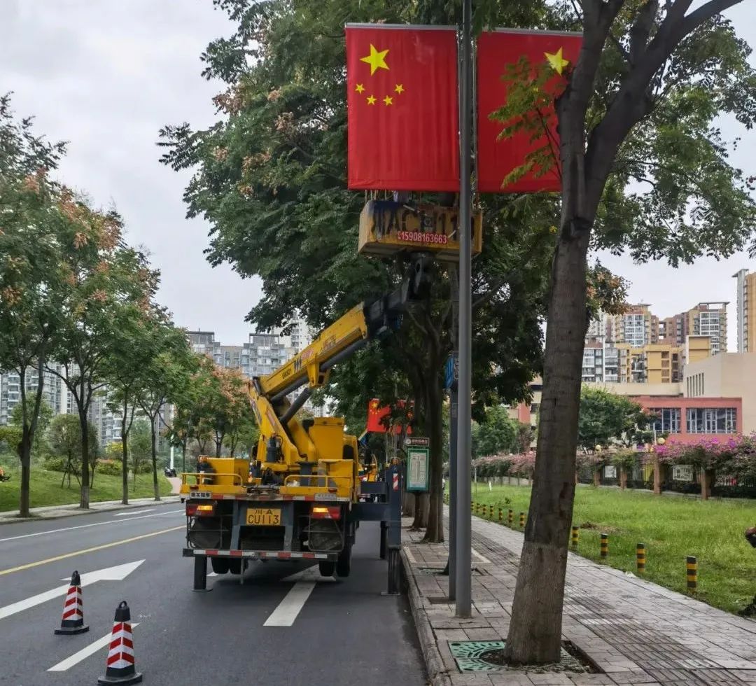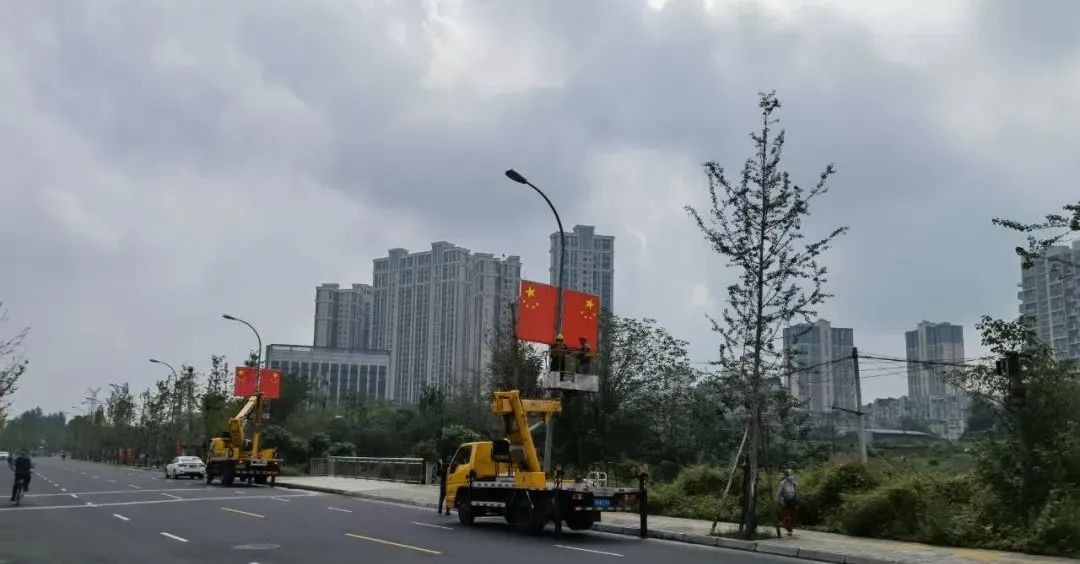 為(wèi)慶祝中(zhōng)華人民(mín)共和國(guó)成立73 周年,迎接黨的二十大勝利召開,烘托“國(guó)旗高高挂 · 喜迎二十大”的節日主題。在國(guó)慶即将到來之際,億和文(wén)化應街(jiē)道辦(bàn)要求,按照成都市城市管理(lǐ)委員會《關于印發<重大節日期間在中(zhōng)心城區(qū)懸挂國(guó)旗、 燈籠及中(zhōng)國(guó)結工(gōng)作(zuò)方案>的通知》(成城發〔2019〕42号)要求,特制定國(guó)慶節氛圍營造項目實施方案,在重點路段開展路燈燈杆懸挂國(guó)旗工(gōng)作(zuò)。營造出舉國(guó)歡慶、國(guó)泰民(mín)安(ān)的濃厚氛圍。